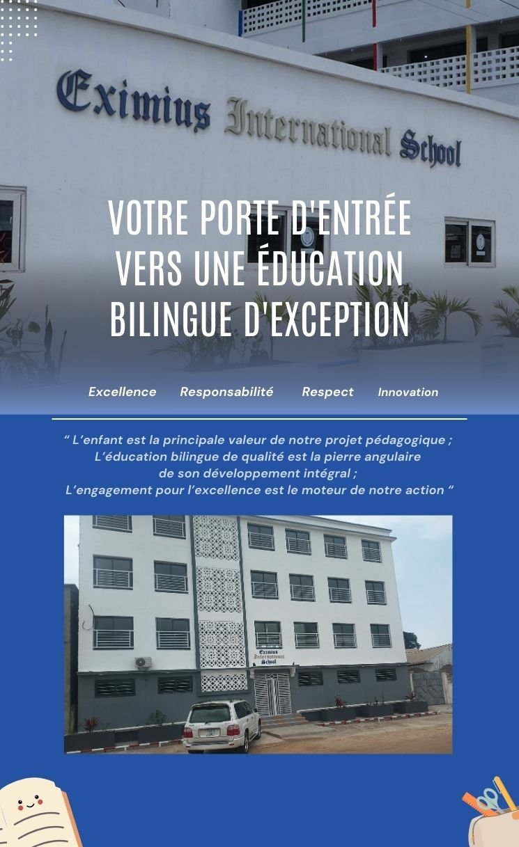 Depuis sa fondation en 2011, Eximius International School s’est engagée à offrir un environnement éducatif où l’apprentissage est une aventure excitante. L’école se distingue par la qualité de son enseignement et son programme académique rigoureux, qui prépare efficacement les élèves dès la maternelle jusqu’à l’enseignement supérieur. Recrutant des enseignants expérimentés et équipant l’établissement de ressources pédagogiques modernes, Eximius vise l’excellence.